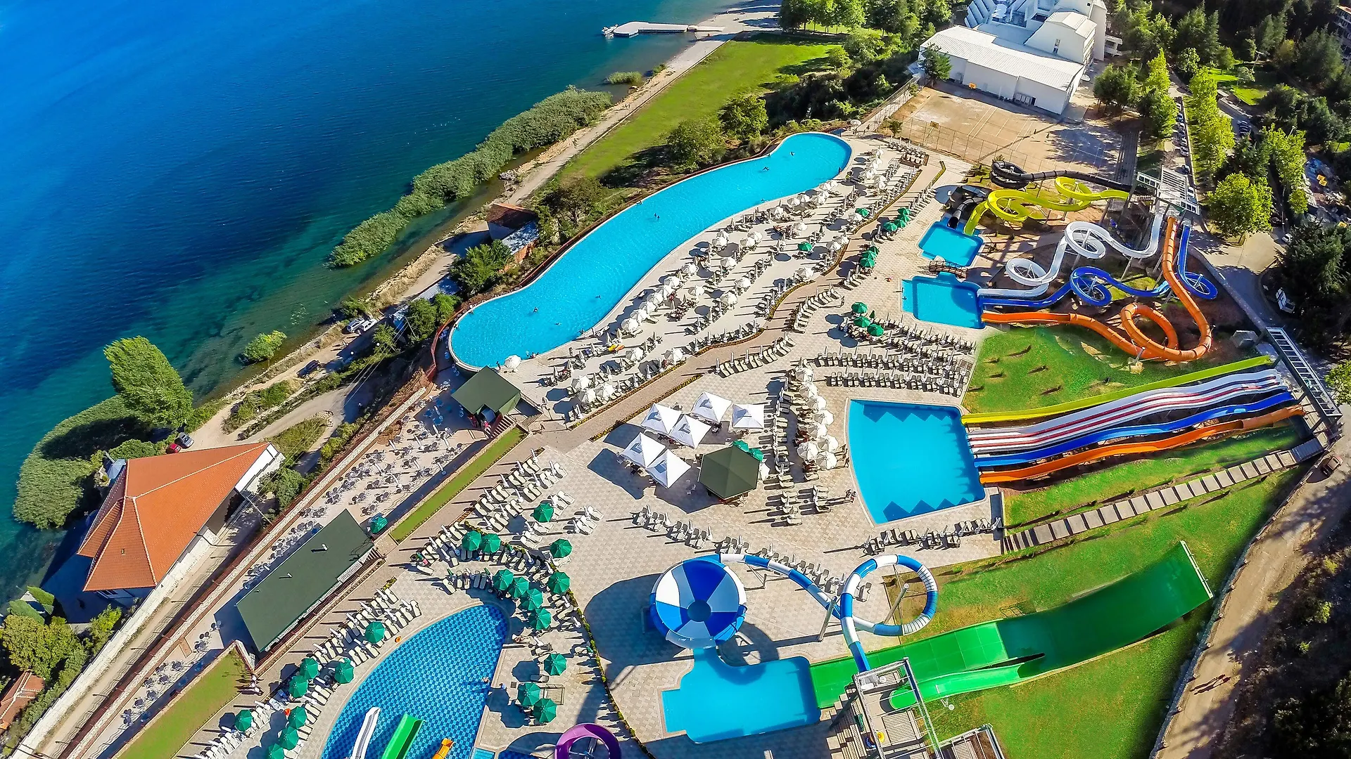 Az 5 csillagos Hotel Izgrev Spa & Aquapark Sztruga közel van a Kalishta Monastery területéhez, amely 11 percnyi sétára található. A hotel a helyszíni a la carte étteremben nemzetközi ételeket szolgál fel.